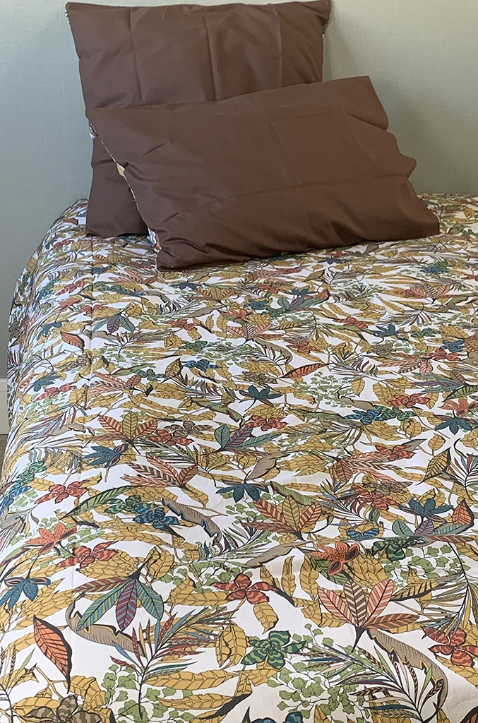 La finition recto/verso de la EasyHousse LUVE et de sa taie d’oreiller coordonnée, un côté motif floral et un côté uni, vous permettra de varier les ambiances.