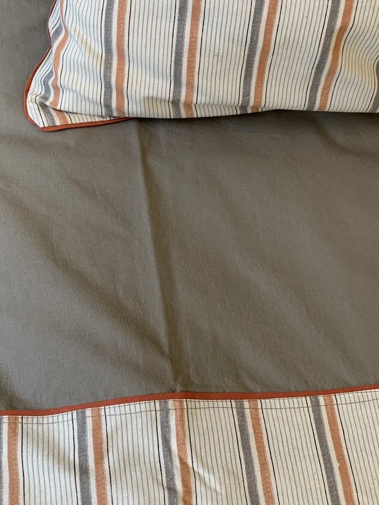 Sa finition est soulignée d’un biais contrastant marron sur le contour pour plus de finesse et son rabat de 19 cm permettra un bon maintien de votre oreiller dans la housse.